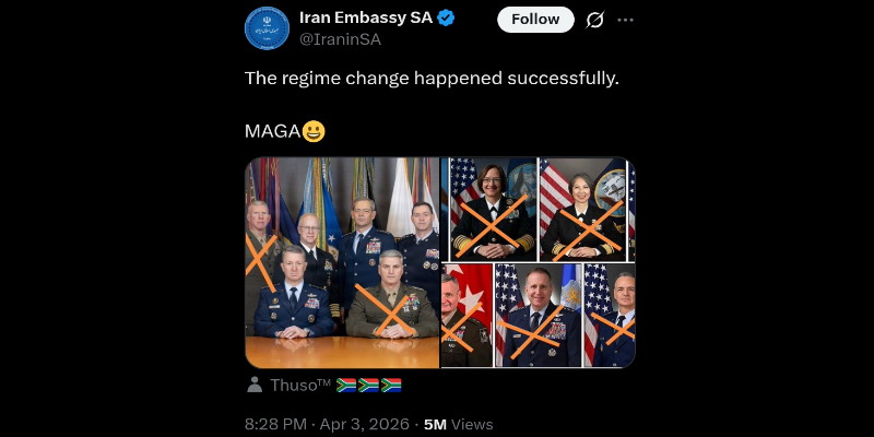 Unggahan tersebut segera viral, terutama karena disertai gambar sejumlah pejabat tinggi militer Amerika Serikat yang wajahnya diberi tanda silang, sebuah simbol yang seolah menggambarkan “penggantian” atau bahkan “pembersihan” jabatan.