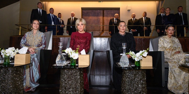 Sebelum memasuki Royal Box untuk menyaksikan pertunjukan, para putri kerajaan yang didampingi Brigitte Macron terlebih dahulu disambut oleh jajaran Dewan Direksi Yayasan Teater Kerajaan Rabat.