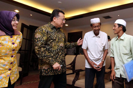 Ketua Dewan Perwakilan Daerah (DPD) Irman Gusman didampingi Anggota DPD Asal Provinsi Riau, Intsiawati Ayus (kiri) menerima perwakilan petani Pulau Padang di Gedung DPD, Jakarta, (Jumat 6/1). Para petani asal Desa Pulau Padang, Meranti, Provinsi Riau ini sudah 26 hari demo jahit mulut di depan Gedung DPR. Mereka meminta komitmen Ketua DPD untuk menyelesaikan kasus sengketa lahan Desa Pulau Padang. DWI PAMBUDO/RMTemukan berita-berita hangat terpercaya dari Kantor Berita Politik RMOL di Google News.