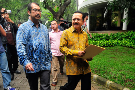 Direktur Pendaftaran dan Pemeriksaan Laporan Hasil Kekayaan Penyelenggara Negara (PP-LHKPN) KPK, Cahya Herdianto Harefa (kiri) ikut verifikasi calon incumbent Gubernur DKI Jakarta Fauzi Bowo di rumah dinasnya di Jalan Taman Suropati, Menteng, Jakarta Pusat, (Selasa 12/6). DWI PAMBUDO/RM