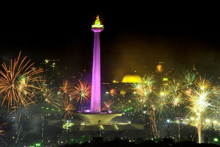 Suasana pegantian tahun di Monas, pukul 00.00, 1 Januari 2013. HARITSAH ALMUDATSIR / JAWA POS/JPNN PUTU