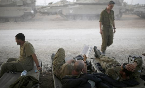 Tentara Israel beristirahat di pos jaga dekat dengan perbatasan ke Jalur Gaza pada Senin (18/8). Mereka beristirahat ketika gencatan senjata sedang diterapkan menyusul negosiasi yang masih digelar di Kairo. Israel dan Palestina sepakat memperpanjang gencatan sejata hingga malam nanti. REUTERSTemukan berita-berita hangat terpercaya dari Kantor Berita Politik RMOL di Google News.