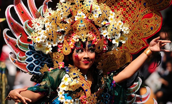 Seorang model mengenakan kostum bertema Bali dalam acara Jember Fashion Carnival (JFC) ke-13 yang digelar kemarin (Minggu, 24/8). Perhelatan JFC tahun ini mengangkat tema "Triangle, Dynamic in Harmony". JCF diklaim sebagai salah satu parade jalanan terbesar yang menampilkan lebih dari 850 partisipan yang berlenggang mengenakan sejumlah konstum khas berbagai tema menyusuri jalan sepanjang 3.6 kilometer di Jember. WALL STREET JOURNAL Temukan berita-berita hangat terpercaya dari Kantor Berita Politik RMOL di Google News.
