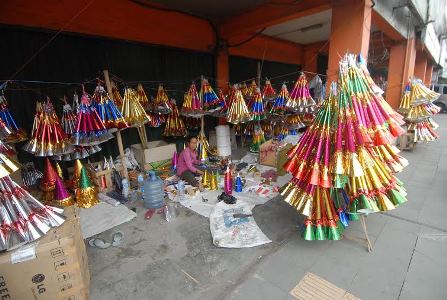 Pedagang terompet dari luar daerah menyerbu Glodok,Jakarta Barat, Jumat (26/12). Mereka menjajakan terompet menjelang datangnya perayaan Tahun Baru 2015. Putu Wahyu Rahma/RM