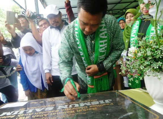 Menpora Imam Nahrawi saat meresmikan sarana olahraga "Jismun Salim" berupa lapangan olahraga bola voli dan bola basket di SD Anak Saleh Kota Malang usai membuka O2SN 2016 tingkat SD/MI se-Kota Malang di Sekolah Dasar (SD) Anak Saleh di Kota Malang, Jawa Timur, Sabtu (9/4). Repro