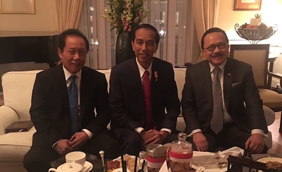 Duta Besar Indonesia untuk Jerman, Fauzi Bowo (kanan), menyambut kedatangan Presiden Joko Widodo (tengah) yang didampingi Kepala Badan Intelijen Negara (BIN) Sutiyoso (kiri) di Jerman. Jokowi dan rombongan mendarat di Bandara Internasional Tegel Berlin, Republik Federal Jerman, Minggu 17 April 2016 pukul 20.40 waktu setempat (WS) atau Senin pukul 01.40 WIB (18/4). Baik Fauzi Bowo, Jokowi maupun Sutiyoso merupakan mantan Gubernur DKI Jakarta. Tim Komunikasi PresidenTemukan berita-berita hangat terpercaya dari Kantor Berita Politik RMOL di Google News.