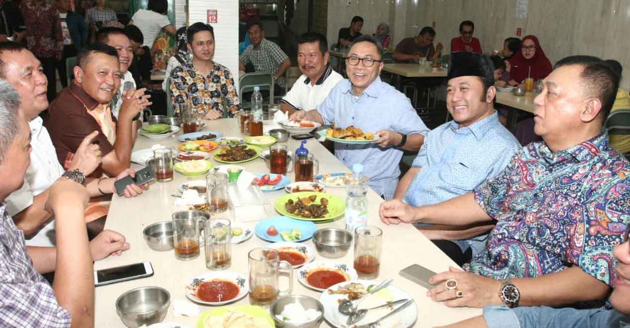 Ketua MPR RI yang juga Ketau Umum Partai Amanat Nasional (PAN) mampir di Warung Nasi Uduk Toha yang terkenal di Bandar Lampung, Senin malam (12/9). Hadir bersama Zulkifli, Kapolda Lampung Brigjen Pol Ike Edwin, Bupati Lampung Selatan Zainuddin Hasan, dan rombongan lainnya. RMOLTemukan berita-berita hangat terpercaya dari Kantor Berita Politik RMOL di Google News.