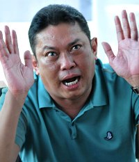 Tidak ada sepatah kata pun diucapkannya saat sejumlah awak media massa menyambutnya. Bapak mertua bintang film Dian Sastrowardoyo itu hanya sesekali tersenyum.
