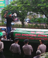 "KPK acapkali menghamburkan informasi ke ruang publik tentang hal ihwal keterlibatan si koruptor, namun jika ditanya dalam kasus Century yang melibatkan Boediono, Ibas dalam kasus Hambalang serta Ani Yudhoyono, begitu irit informasi," lantang koordinator aksi, La Ode Ahmadi di depan gedung KPK, Jalan HR Rasuna Said, Jakarta Selatan, Senin (13/1).