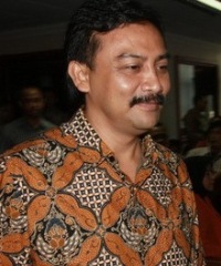 Jelang pembacaan tuntutannya, bekas Menpora itu membagi-bagikan buku karyanya kepada para wartawan. Buku-buku itu dibagikan oleh dua perempuan setengah baya.