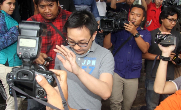 Siang tadi, James mendatangi kantor KPK di Jalan Rasuna Said, Jakarta. Namun, dia menemui penyidik tidak sampai satu jam lamanya. James keluar dari pintu lobi KPK dengan menunduk. Dia pun bungkan saat diberondong pertanyaan oleh wartawan.