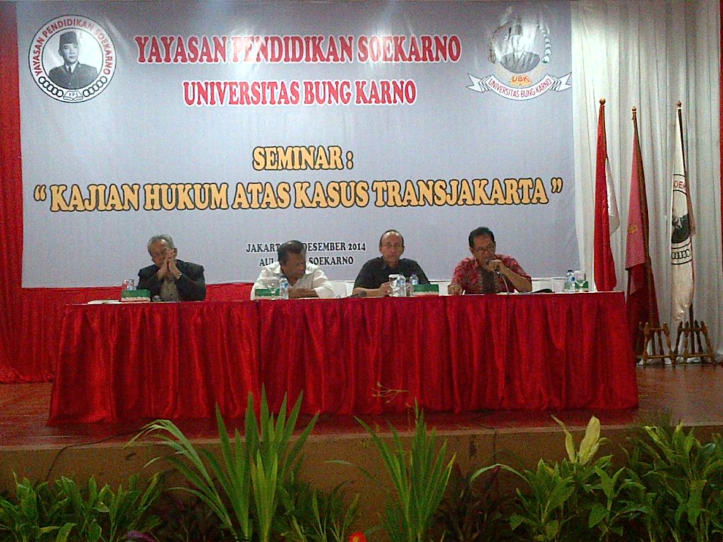 "Bisa melalui jalur politik di DPR, di mana DPR kemudian meminta Badan Pemeriksa Keuangan untuk melakukan audit khusus atas kasus itu," ungkapnya dalam seminar bertajuk 'Kajian Hukum Atas Kasus Transjakarta' di kampus Universitas Bung Karno, Jakarta, Senin (15/12).