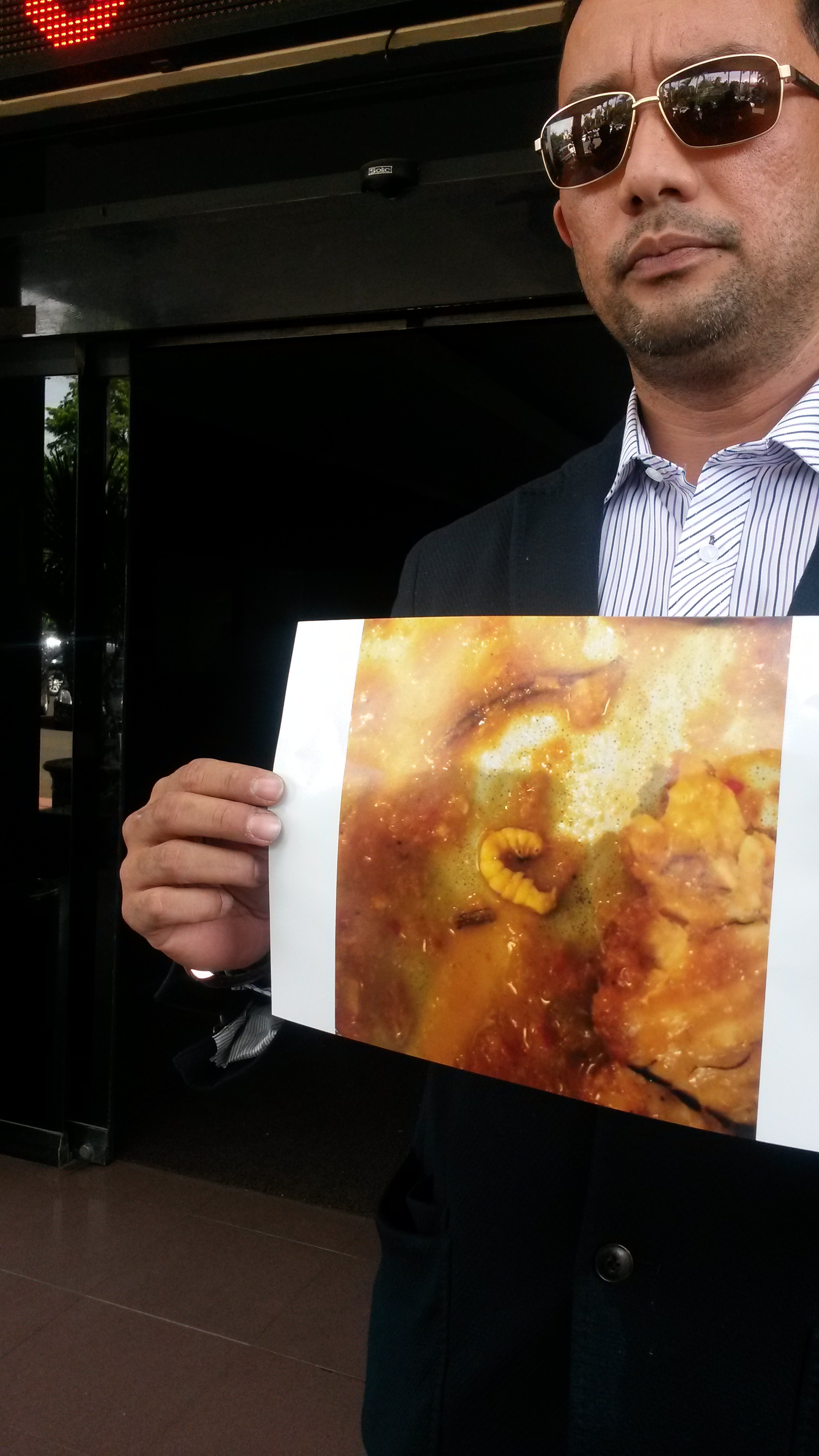 manager in charge rumah makan itu menemuinya dan membenarkan bahwa benar ulat berada di piring ikan gurame.