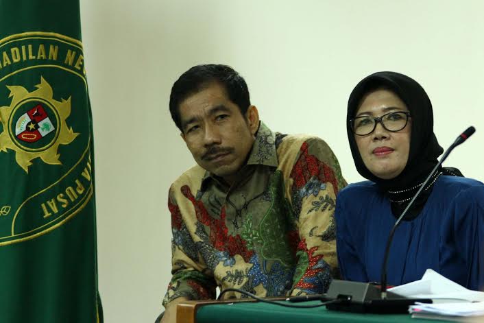 Terdakwa kasus dugaan suap pengurusan sengketa Pemilihan Kepala Daerah (Pilkada) Kota Palembang di Mahkamah Konstitusi (MK), Walikota Palembang nonaktif Romi Herton (kiri) bersama Isterinya Masyitoh (kanan) menjalani sidang lanjutan dengan agenda mendengarkan keterangan saksi-saksi, di Pengadilan Tipikor, Jakarta, Kamis (8/1).
