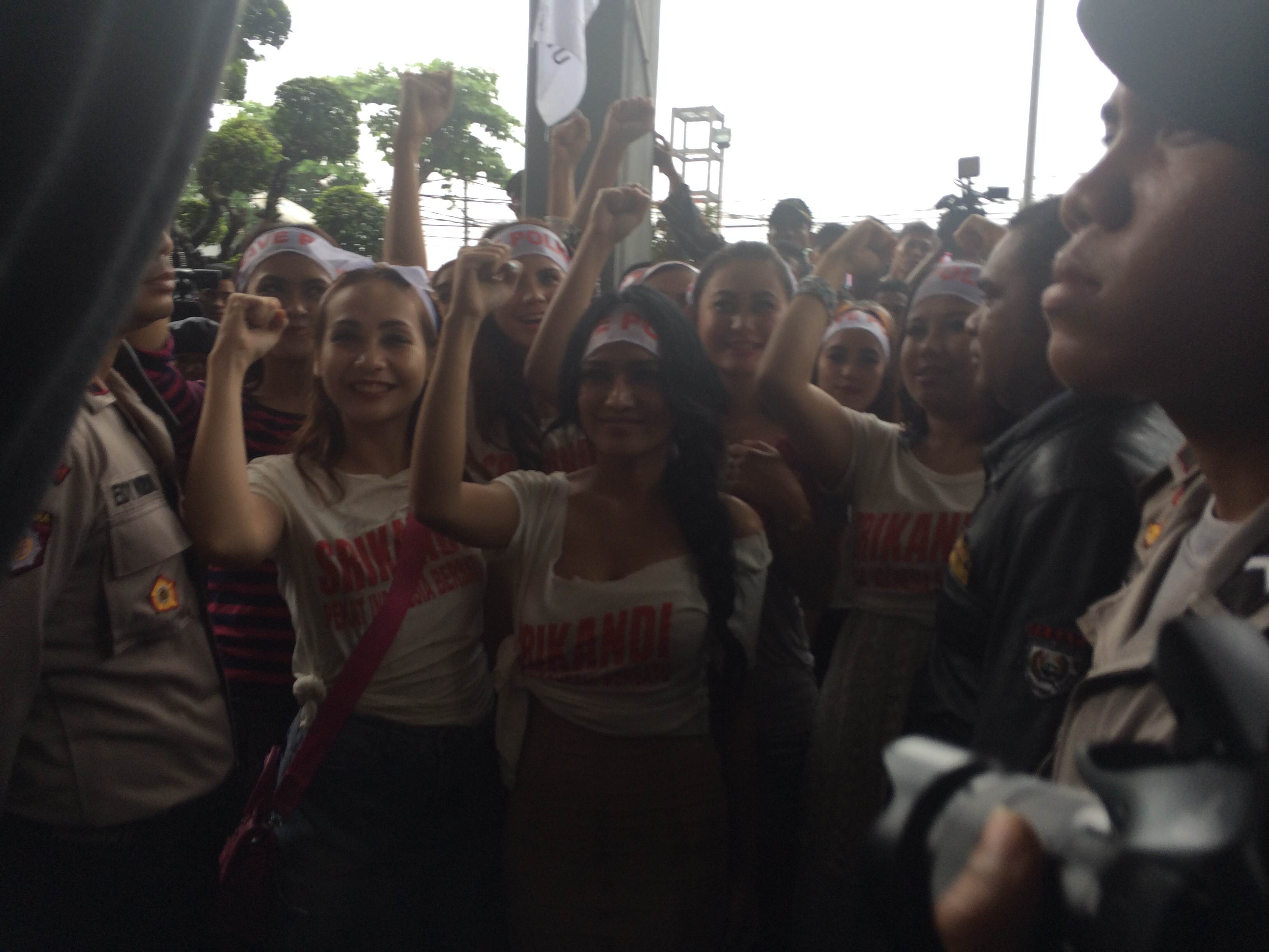 "Save Polri, save NKRI pokoknya," seloroh seorang wanita muda bergincu merah tebal.