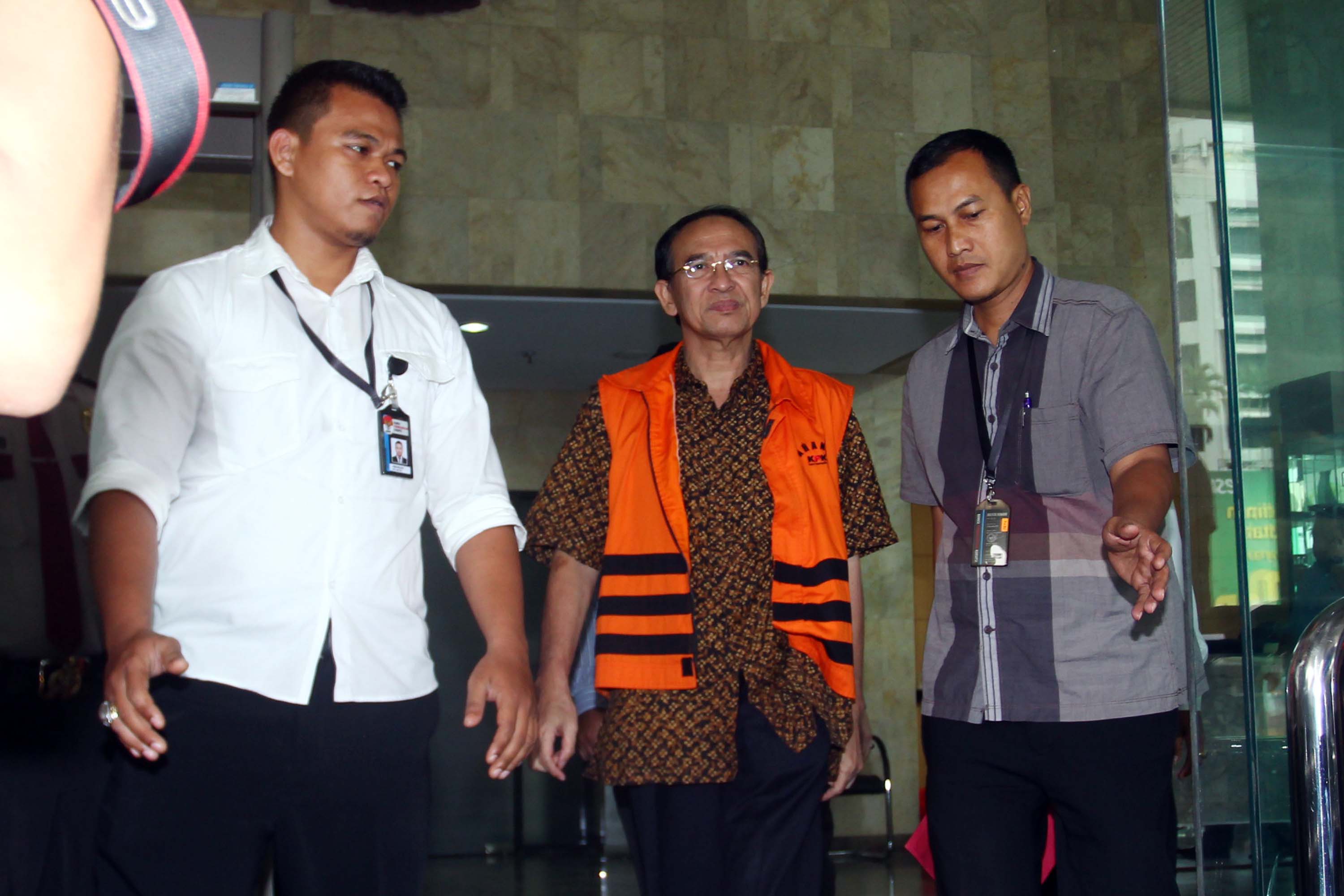 Bekas Menteri Agama Suryadharma Ali (SDA) usai diperiksa di gedung KPK, Jakarta, Selasa (21/4). SDA diperiksa sebagai tersangka dalam kasus dugaan korupsi dalam penyelenggaraan ibadah haji tahun 2012-2013. Tedy Kroen/RM