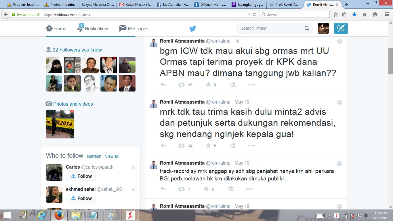 "Siapapun yang saya anggap penghinaan/pencemaran nama baik, siap-siap saja menghadapi gugatan dan tuntutan pidana di pengadilan. Serius!" kata Romli masih dalam twitternya.