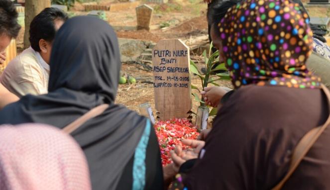 Tak hanya Ibu korban, kesedihan juga merundung pada ayah korban Asep Saefullah dan nenek korban Saiyah, serta keluarga lainnya. Kesedihan makin nampak saat jenazah dimasukkan ke dalam liang lahat.