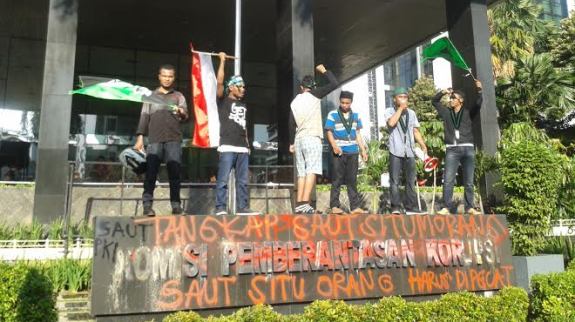 Aksi unjuk rasa Himpunan Mahasiswa Islam (HMI) di depan Gedung Komisi Pemberatasan Korupsi (KPK), Senin (9/5), berujung ricuh alias chaos. Mahasiswa kesal karena Wakil Ketua KPK, Saut Situmorang tak mau menemui mereka.