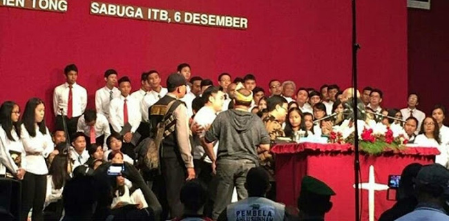 Seburuk-buruknya situasi yang berhak melakukan pemberhentian kegiatan keagamaan dengan alasan hukum yang dibenarkan hanyalah aparat negara bukan kelompok masyarakat sipil.