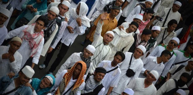 Mereka mayoritas menggunakan pakain berwarna putih, layaknya seperti mengikuti aksi belas Islam.