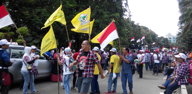 Hal itu terlihat dari bendera partai yang dikibarkan bersama bendera merah putih dan atribut lain dari pendukung Ahok. Ada lima bendera Golkar berbentuk segitiga dengan warna khas kuning.