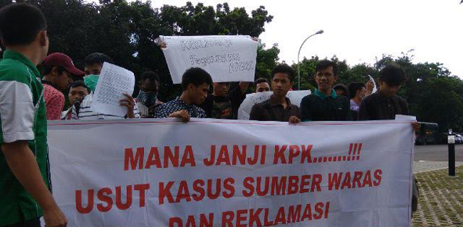 Hari ini, puluhan mahasiswa yang tergabung dalam Himpunan Mahasiswa Al-Washliyah (Himmah) menyambangi gedung KPK di kawasan Kuningan, Jakarta, untuk menagih janji ketua KPK, Agus Rahardjo, menuntaskan kasus dugaan korupsi pembelian lahan Yayasan Kesehatan Sumber Waras (YKSW).