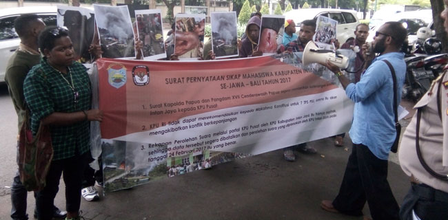 "Kami merasakan betul, bagaimana masyarakat di tanah kelahiran kami di Intan Jaya begitu menderita akibat konflik ini. KPU Pusat harus arief dan bijaksana dalam membuat keputusan agar tidak terjadi konflik horizontal yang semakin parah," kata Koordinator Wilayah Ikatan Pelajar dan Mahasiswa Suku Moni (IPMO) Intan Jaya, Sepi Sani.