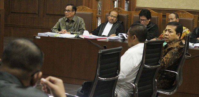 Begitu juga saat Novanto dihadirkan jaksa di persidangan. Dalam kesaksiaannya Novanto membantah mengenai tuduhan yang ada dalam surat dakwaan. Menurut Novanto, dirinya tidak pernah menerima uang terkait proyek pengadaan E-KTP, termasuk menjadi pihak yang memiliki peran penting dalam pemulusan proyek tersebut di DPR.