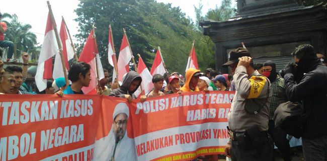 "Polisi kini kurang bertaji dan tak memiliki nyali untuk memproses Habib Rizieq. Kami meminta polisi agar dia (Rizieq) diproses hukum. Kami menilai pengusutan kasus ini tak terdengar lagi gaungnya," ujar Koordinator aksi, Irwan lewat pengeras suara.