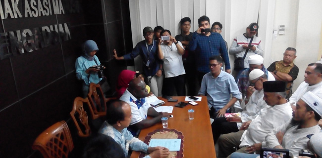 Kedatangan mereka disambut oleh dua komisoner Komnas HAM, Natalius Pigai dan Hafidz Abbas.