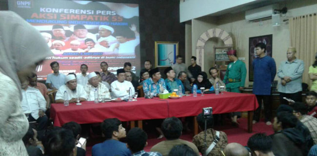 Ikut hadir dalam konpers tersebut, Ketua Umum GNPF-MUI, Bachtiar Nasir, Wakilnya Zaitun Rasmin dan beberapa perwakilan GNPF-MUI lainnya.