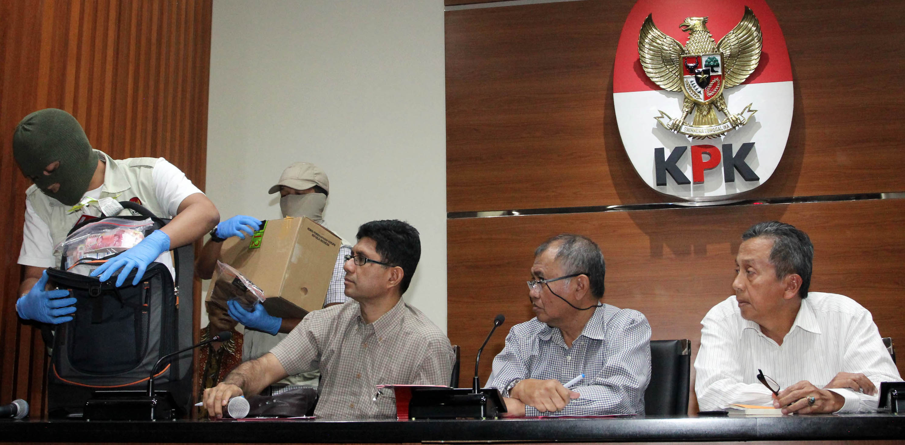 "Setelah dilakukan gelar perkara dan pemeriksaan 1x24 jam, KPK meningkatkan 1x24 jam ke penyidikan serta menyatakan empat orang sebagai tersangka," kata Wakil Ketua KPK Laode M. Syarif dalam jumpa pers di Gedung Merah Putih KPK, Jakarta Selatan, Sabtu sore (27/5).