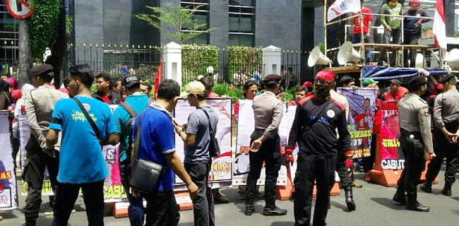Massa yang menamakan diri Solidaritas Pergerakan Mahasiswa Hukum untuk Keadilan (SPMHK) ini menuntut tiga hal. Pertama, Ketua PN Jakpus harus segera membatalkan Penetapan No. 89/2016.Eks yang cacat hukum itu.