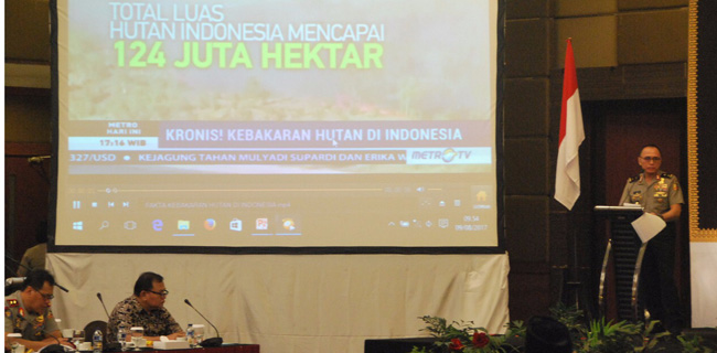 Iriawan memaparkan data penanggulangan karhutla sampai Juli 2017 terjadi penurunan baik jumlah