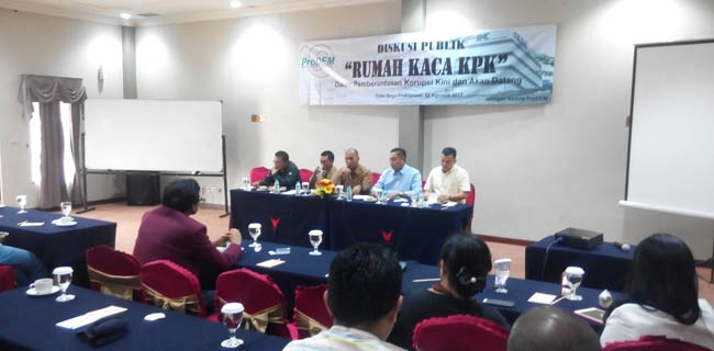 "Kenapa 'Rumah Kaca'? Secara definisi itu artinya bangunan transparan. Dari dalam mau pun luar kelihatan. Khususnya terhadap kinerja KPK. Itu yang kita harapkan," ungkap Sekjen Prodem Satyo Purwanto menyampaikan prolog diskusi.
