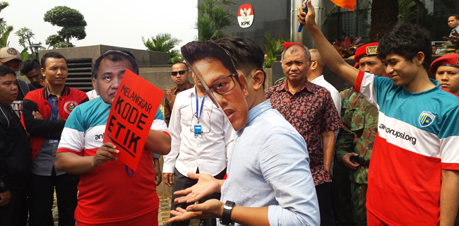 Mereka yang berunjukrasa berasal dari Indonesia Corruption Watch (ICW), YLBHI, LBH Jakarta, Kopel, dan beberapa organisasi lain. Dalam aksi teatrikal, dua orang demonstran mengenakan topeng wajah Aris dan Ketua KPK, Agus Rahardjo.