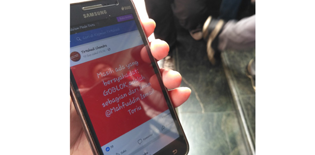 Tirtahadi Chandra memposting beberapa tulisan yang diduga menodai agama Islam. Tulisan tersebut antara lain berbunyi â€Hayo ngaku, siapa disini yang bersyahadat: Hoax adalah sebagian dari Iman†yang diposting pada tanggal 3 September 2017. Dan, "Masih ada yang bersyahadat: GOBLOK adalah sebagian dari Iman @Mahfuddin ismail Torin". Tulisan terakhir di-posting pada tanggal 10 September 2017 pukul 11:26 PM.