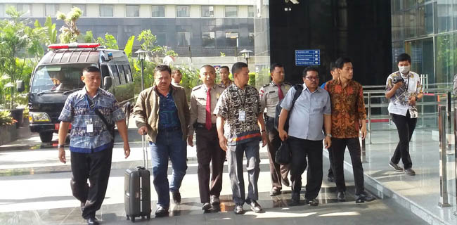 Pantauan redaksi di lapangan, mobil pertama tiba di Gedung KPK pukul 14.44 WIB. Dari dalam mobil keluar dua orang laki-laki. Laki-laki pertama berkacamata dan memakai kemeja biru, diketahui merupakan Direktur Utama dari Peursahaan Daerah Air Minum (PDAM).