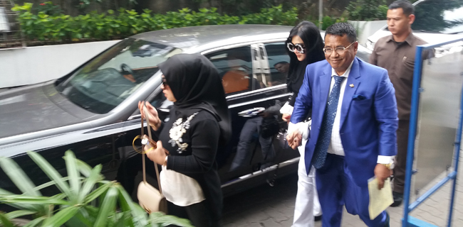 Syahrini yang mengenakan baju ketat warna hitam berenda putih lengkap dengan kacamata hitam juga ditemani adik sekaligus managernya Aisyahrani. Mereka tiba di Bareskrim Polri, Gambir, Jakarta Pusat pada pukul 11.49.