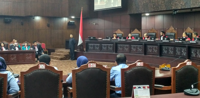 "Izin Yang Mulia, pada intinya pemerintah tetap pada keterangan terdahulu," kata salah satu kuasa presiden, Ninik Herianto.