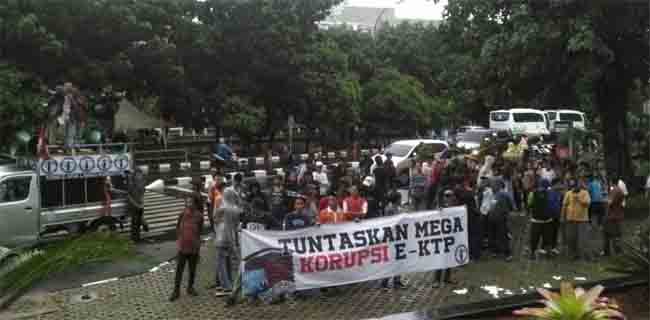 "Maka melihat situasi tersebut kami dari Komite Aksi Lawan Koruptor menyatakan sikap mendesak KPK untuk menuntaskan mega proyek E-KTP. Dan, KPK harus segera menangkap para mafia pelaku korupsi ini," ujarnya.