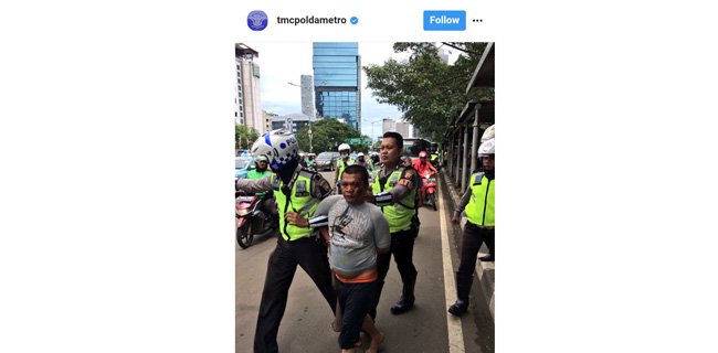 Pelaku Fahruzi ditangkap setelah mencoba menyerang Brigadir Gigih Wibisono dari Satuan Lalu Lintas Polda Metro Jaya. Awalnya, pelaku berkelahi dengan pejalan kaki, lalu Brigadir Gigih Wibisono berusaha melerai. Tetapi, Fahruzi justru balik menyerang Brigadir Gigih menggunakan pisau yang dibawa olehnya.