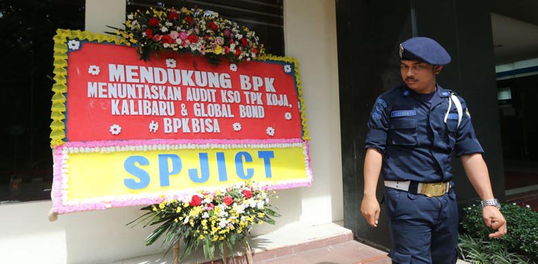 Karangan bunga itu diletakan di depan gedung BPK dan bertuliskan dukungan bagi BPK. Tulisannya berbunyi "SPJICT Mendukung BPK Menuntaskan Audit KSO TPK Koja, Kalibaru dan Global Bond†#BPKbisa