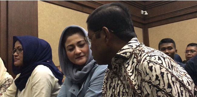 Saat di ruang persidangan, Idrus langsung mengambil posisi duduk bersebelahan istri Novanto, Deisti Astriani Tagor yang tampil baju dipadu kerudung warna senada. Mereka tampak berbincang sembari menunggu sidang dimulai.