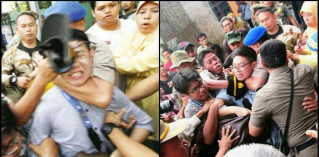 Bukannya menghentikan penggusuran untuk menghormati hukum, tiba-tiba 5 (lima) orang anggota Satpol PP dan polisi melakukan pengeroyokan terhadap Pemohon dengan cara menarik, mencekik, serta memukul Pemohon.