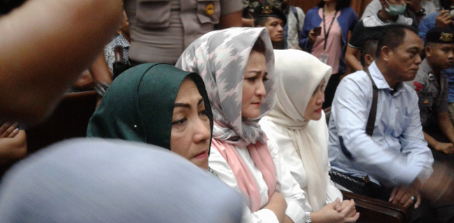 Raut wajah Deisti Astriani Tagor terlihat sendu ketika mendengar eksepsi suaminya, Setya Novanto ditolak majelis hakim dalam agenda persidangan di Pengadilan Tindak Pidana Korupsi Jakarta, hari ini (Kamis, 4/1). < SEBELUMNYA