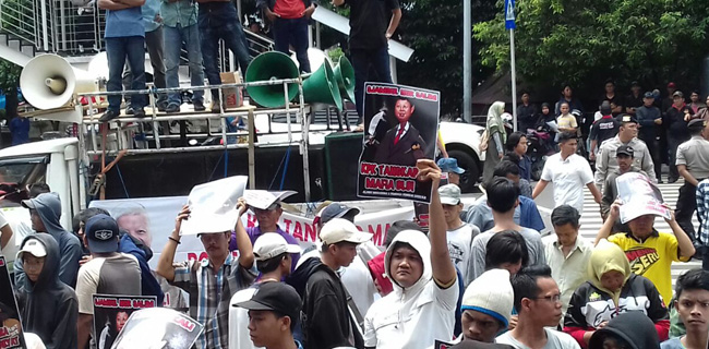 Massa menuntut KPK segera menjerat pemilik PT Gajah Tunggal, Sjamsul Nursalim, dengan status tersangka dalam perkara yang merugikan negara triliunan rupiah itu.