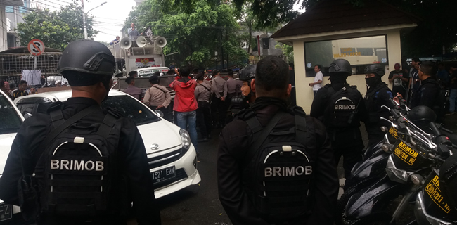 Dari pantauan, puluhan personel Sabhara dibantu Brimob berpakaian taktis lengkap terlihat menjaga gedung yang telah dikelilingi kawat duri di tengah massa aksi yang didominasi oleh para pemuda itu.