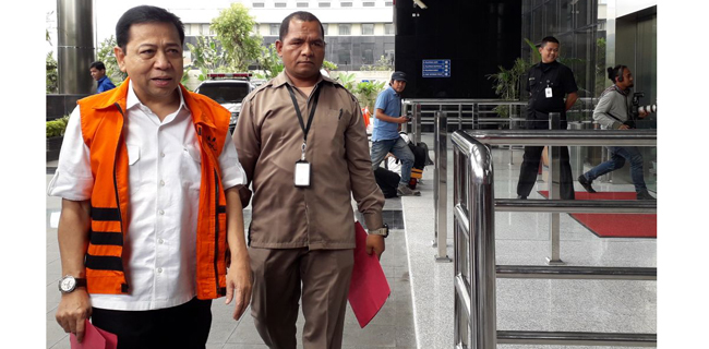 Setnov terlihat membawa satu map warna merah.